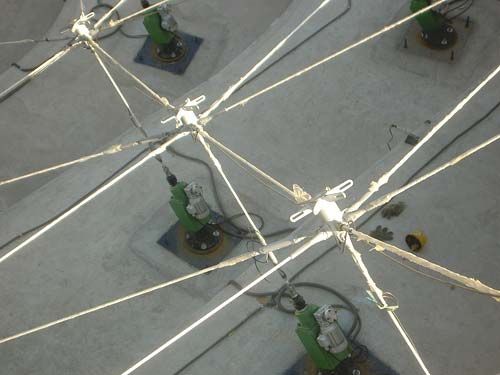 3、鋼絲繩強(qiáng)度按1670N/mm2,常用鋼絲繩強(qiáng)度有1570、1670、1770、1870、1960N/mm2,安全系數(shù)一般取6,靜態(tài)張拉的鋼絲繩安全系數(shù)可取3-4。